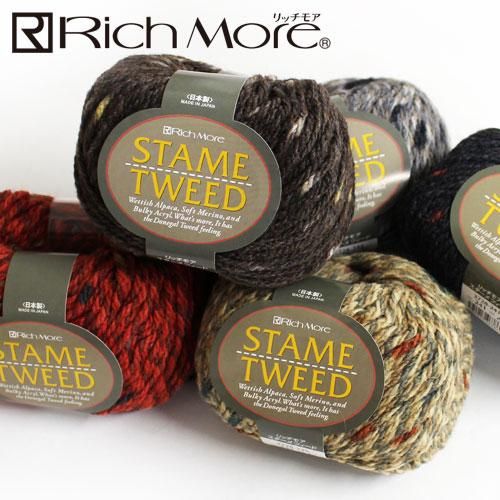 従来のスターメにプリント染を施して、素朴なドニゴールツィード調の表情に。アルパカのぬめり感、メリノのソフトさ、アクリルのバルキー性と、最大もらさずメリットを追求。これまでのハード一点張りのツィードからソフト&ライトなフィーリングへ。