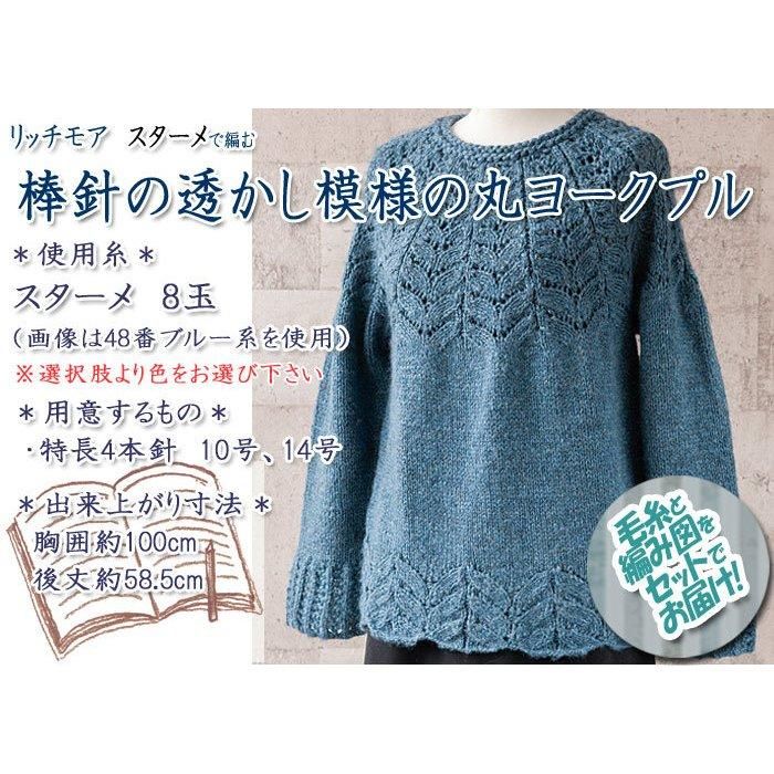 リッチモア 棒針の透かし模様の丸ヨークプル 着分セット(スターメ8玉・編図)【着分27番】