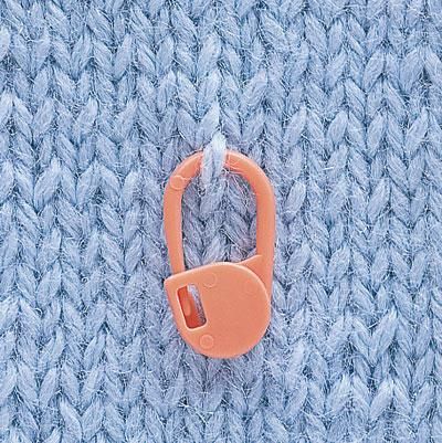 編み目からはずれにくく、安心して使えるロック式のマーカー。10〜20段ごとや増減目の位置に段数リングをつけると、編みながら確認できスムーズに編み進められます。