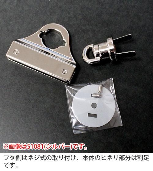 バッグのフタの縁に挟み、ネジで取り付けるタイプの金具です。