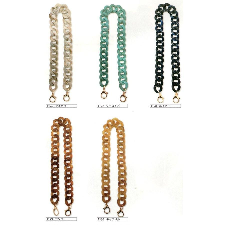 ハンドルはカラフルなチェーンになっているのでバッグの色に合わせてお好みのものをお選びください。