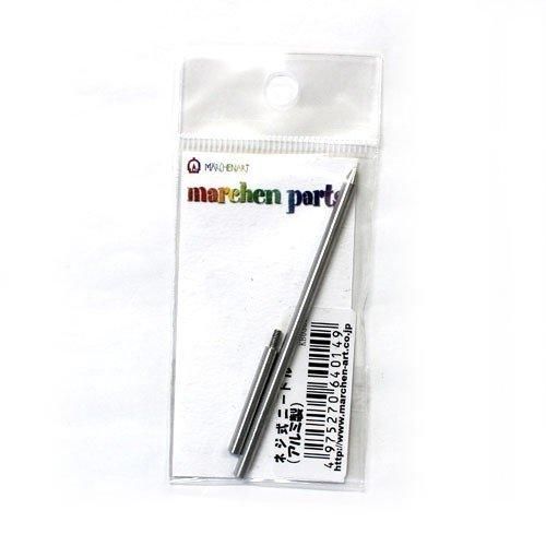 長さが二段階に調整できるニードル。ねじ部分にコードを斜めに切ってグリグリとねじ込むとコードが外れずに使えます。コードを編み込む時に使用すると便利な道具です。