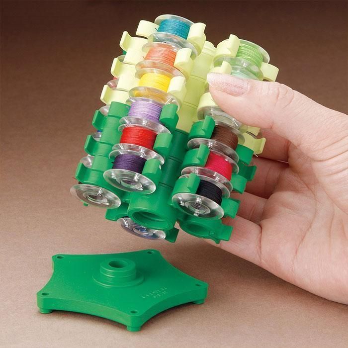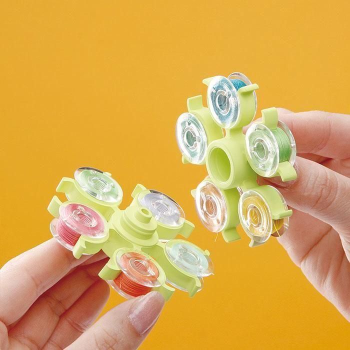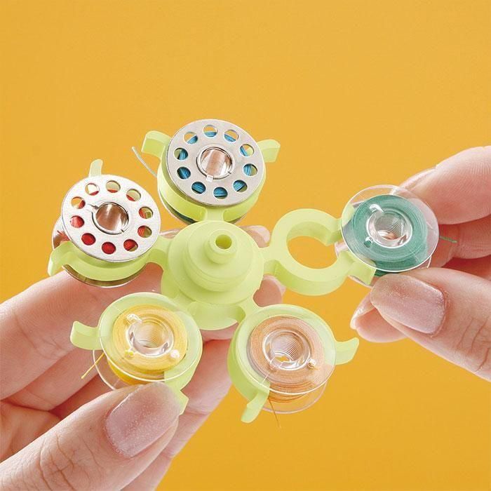 ホルダーがボビンの糸端をつかむので、糸が絡み合いません。弾力のあるホルダーなので、出し入れがラクラクです。