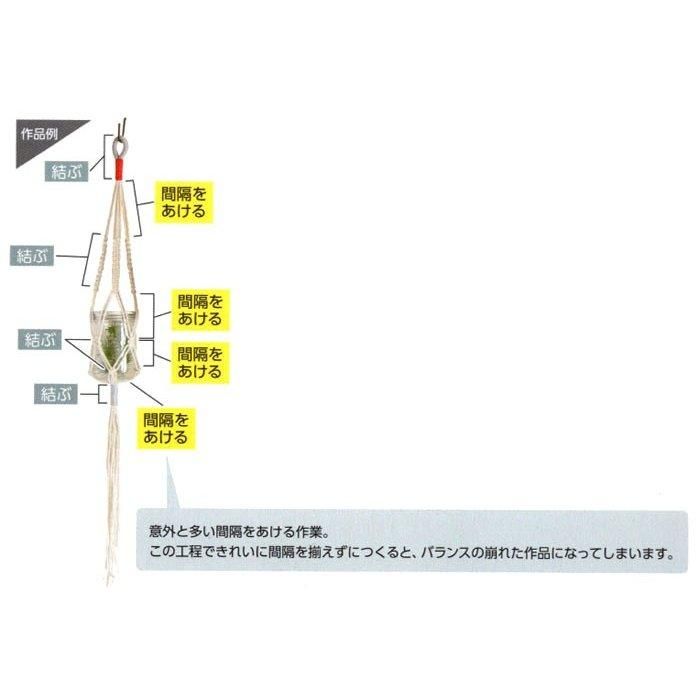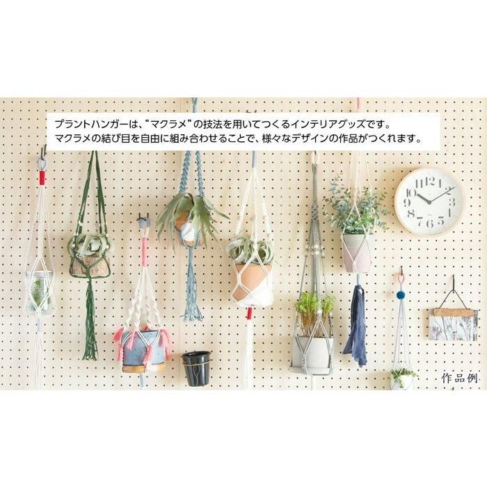 「基本の使い方」と「プラントハンガー3種のつくり方」説明書付きなので、初めての人でも安心。コツを掴めば、基本のマクラメの結び目を組み合わせて自由に作品づくりが楽しめます。