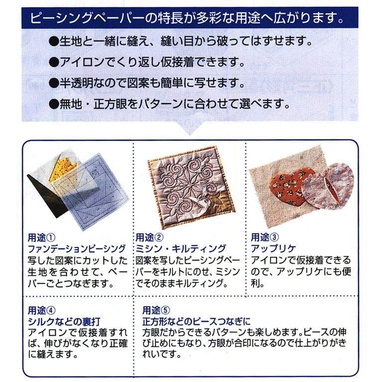 布と一緒に縫え、縫い目から破ってはずせます。アイロンで繰り返し仮接着できます。半透明なので図案も簡単に写せます。