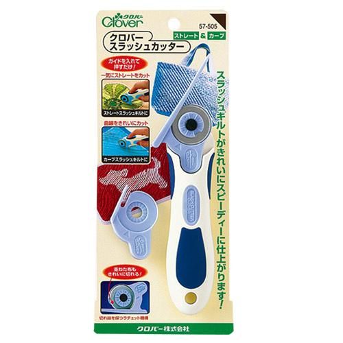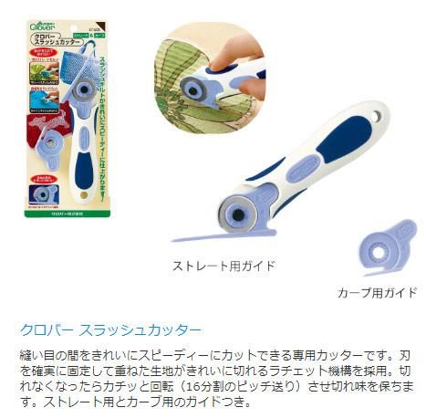 ストレート用・カーブ用の両ガイドをセット。ストレート用、カーブ用のガイド両方をセットしました。ガイドを交換してどちらのスラッシュキルトにも対応できます。(縫い目の間隔はそれぞれ6mm以上用) 刃を確実に固定するラチェット機構。押すときには刃が回転しないラチェット機構。刃が回転しないので布がガイドと刃の間にくいこまずに重ねた布がきれいに切れます。