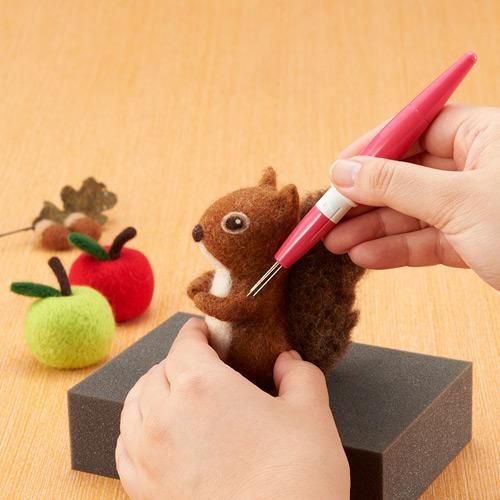 針が3本セットできる持ちやすいボディで、羊毛フェルトの作品がスピーディーに仕上がります。布地へのアップリケにも使用できます。