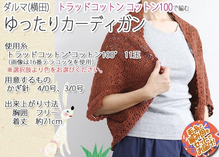横田 ゆったりカーディガン 着分セット(トラッドコットン100 11玉・編み図)【着分1番】