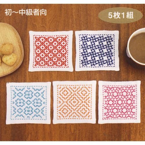 オリムパス 刺し子キット 一目刺しのコースター(5枚1組) 白