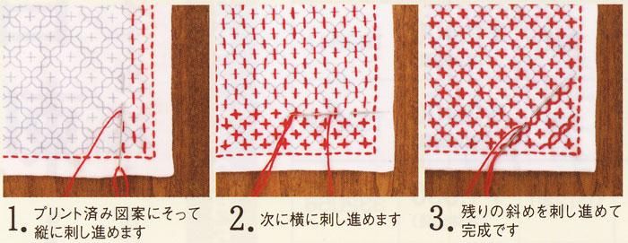 「一目刺し」とは、刺し子の技法のひとつで、一定の針目で、縦、横、斜めと同じ方向を順に刺していく技法です。
