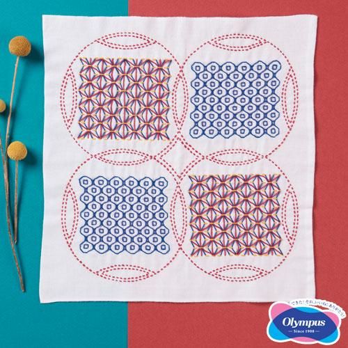 オリムパス 刺し子キット くぐり刺しの花ふきん 麻の葉と銭刺し