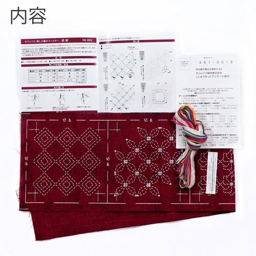 ●内容:古布紬(図案プリント済/綿100%)、刺し子糸(綿100%)、刺し子針、作り方説明書