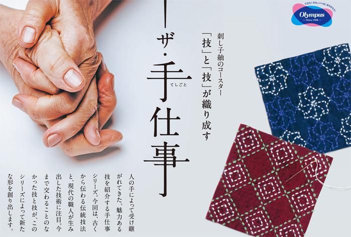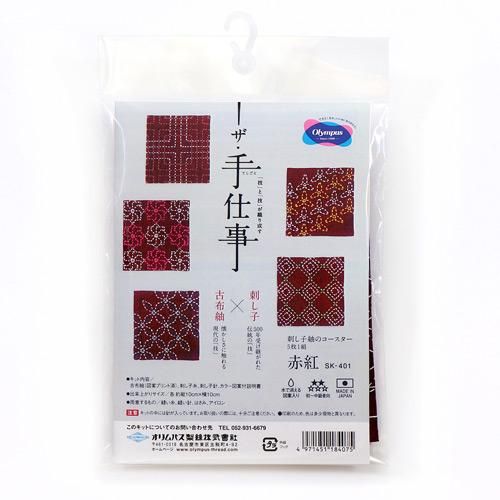 オリムパス キット ザ・手仕事 刺し子紬のコースター 赤紅(5枚1組)【日本の伝統刺繍】
