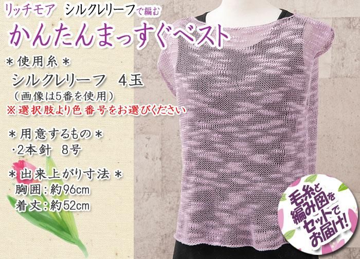 リッチモア シルクレリーフのかんたんまっすぐベスト 着分セット(シルクレリーフ4玉・編図)【着分17番】