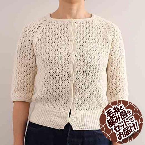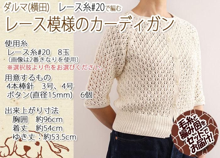 ダルマ(横田)レース模様のカーディガン 着分セット(レース糸#20 8玉・編図)【着分98番】