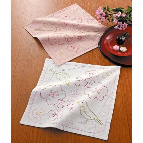 オリムパス キット 刺し子249花ふきん 梅とうぐいす(2枚1組)