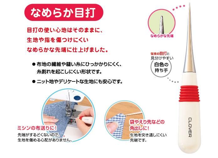 目打の使い心地はそのままに、布地の繊維や縫い糸に引っかかりにくく、糸割れを起こしにくい形状です。
