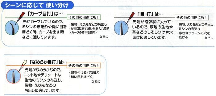 カドを整える、ミシンがけの時に布を送る、糸をほどく…など細かい作業に使います。