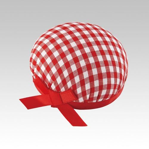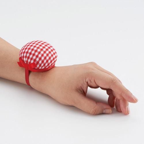コットン生地を使用したチェック柄のピンクッション。 ゴムベルト式、付けはずしが簡単です。