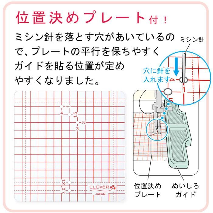 ★ミシン針を落とす穴があいている位置決めプレート付で、ガイドを貼る位置が定めやすいです。