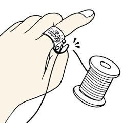 必要な時にすぐに糸がカットできるリング型糸切カッター。使いやすい指にはめて、ご使用ください。
