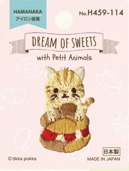 【アイロン接着ワッペン】ハマナカ DREAM OF SWEETS with Petit Animals ワッペン ねことシュークリーム