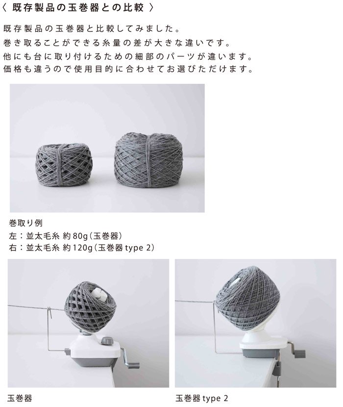 従来の玉巻器の約1.5倍の糸量を巻くことができます。糸を切ってつなぐ回数を減らすことができ、より多くの糸を巻き取ることができます。台にとり付ける留め具部分も調節しやすく、厚みのある台にも付けやすい仕様です。スムーズに巻き取りやすい安定感のある巻き心地です。