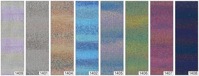 ソフトなウールと細い段染糸を撚り合わせてあり、ミックスグラデーションになっています。