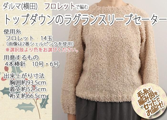 ダルマ(横田) トップダウンのラグランスリーブセーター 着分セット(フロレット14玉・編図)【着分3番】