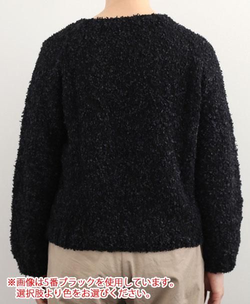 フロレットは、小さな花びらがひらひら。霧がかったモヘヤに舞い落ちたような糸。ふんわり軽やかで甘い雰囲気を纏った編地は、シンプルな編み方でも、その個性が現れます。