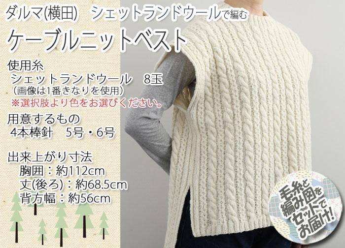 ダルマ(横田)ケーブル ニットベスト 着分セット(シェットランドウール8玉・編図)【着分28番】