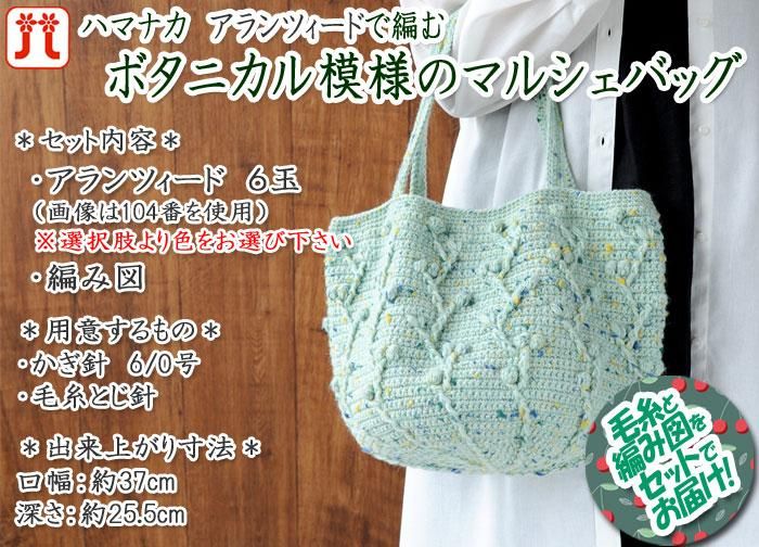 ハマナカ ボタニカル模様のマルシェバッグ 着分セット(アランツィード6玉・編図)【着分127番】