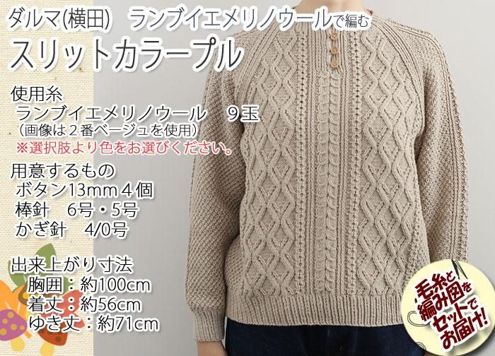 ダルマ(横田) スリットカラープル 着分セット(ランブイエメリノウール9玉・編図)【着分46番】