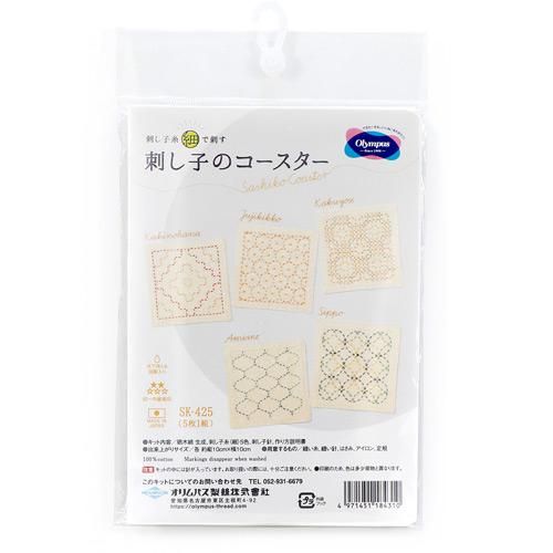 オリムパス キット 刺し子のコースター (5枚1組) 生成【日本の伝統刺繍】