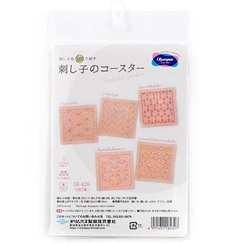 オリムパス キット 刺し子のコースター (5枚1組) 渋ピンク【日本の伝統刺繍】