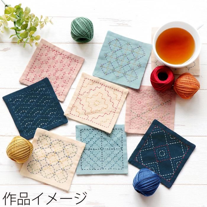 オリムパス キット 刺し子のコースター (5枚1組)  藍【日本の伝統刺繍】