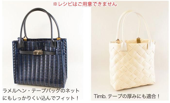 ラ・メルヘンテープやTimb.テープ、マクラメなどいろいろな素材のバッグに使える持ち手です。通常のくわえ金具よりも爪が長く、厚みのあるものが挟めるようになっています。