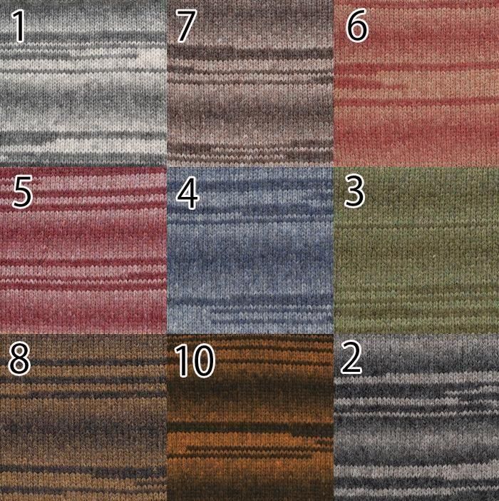 アンデネスは、2色のウール・アルパカ混スライバーをナイロンフィラメントに絡めながらリリヤーンに編み立てた糸です。 2色のスライバーの混率を変化させながら送り込むことによって、グラデーションベースにストライプのアクセントをつけ、今シーズンのトレンドキーワードであるストリアート(縞柄)が表現されています。