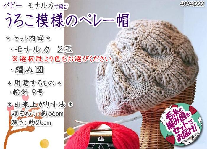 パピー うろこ模様のベレー帽子 着分セット(モナルカ2玉・編図)【着分10番】