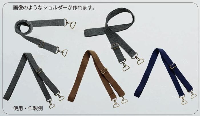 ショルダーを作るのに必要な金具の便利なセットです。オリジナルのショルダーが簡単に作れます。長さが調節できるアジャスター入りです。テープの幅に合わせたパーツをお選び下さい。