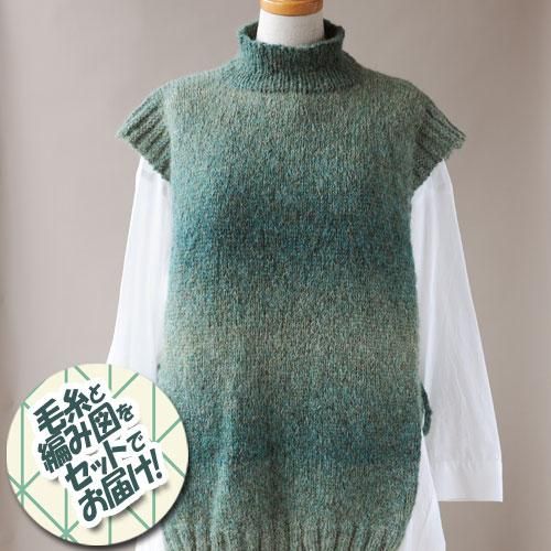 リッチモア サイドリボンベスト 着分セット(アルパカレジェーログラデーション3玉・編図)編み物キット【着分2番】