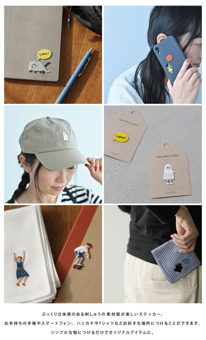 ぷっくり立体感のある刺しゅうの素材感が楽しいステッカー。お手持ちの手帳やスマートフォン、ハンカチやTシャツなどお好きな場所につけることができます。シンプルな物につけるだけでオリジナルアイテムに。