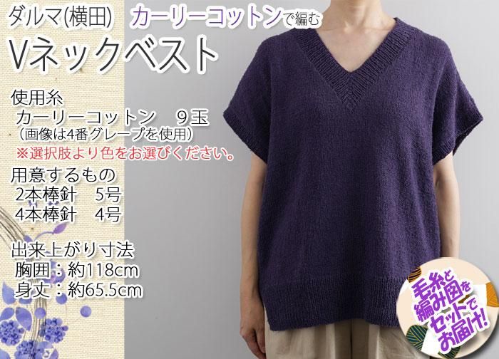 ダルマ(横田) Vネックベスト 着分セット(カーリーコットン9玉・編図)・編図)【着分102番】