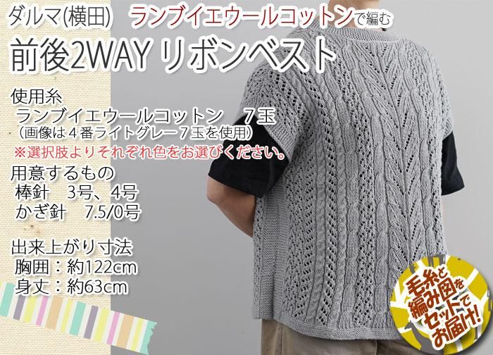 ダルマ(横田) 前後2WAYリボンベスト 着分セット(ランブイエ【ウールコットン】7玉・編図)【着分74番】
