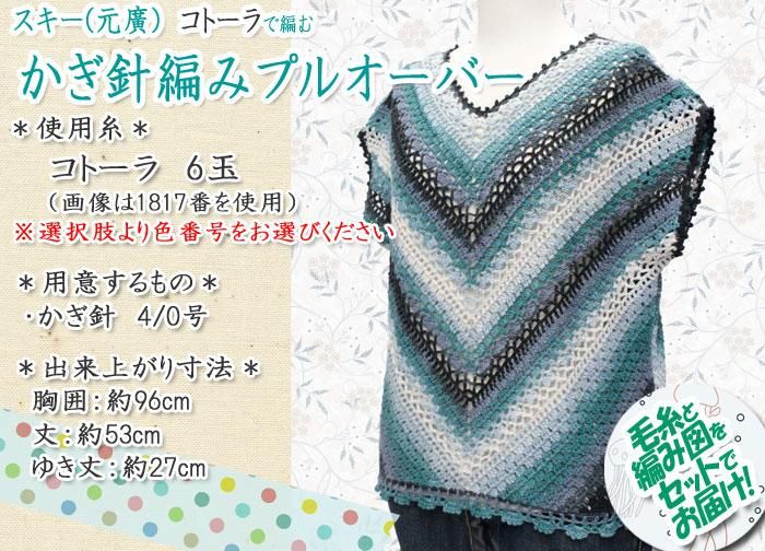 スキー(元廣) かぎ針編みプルオーバー 着分セット(コトーラ6玉・編図)【着分80番】