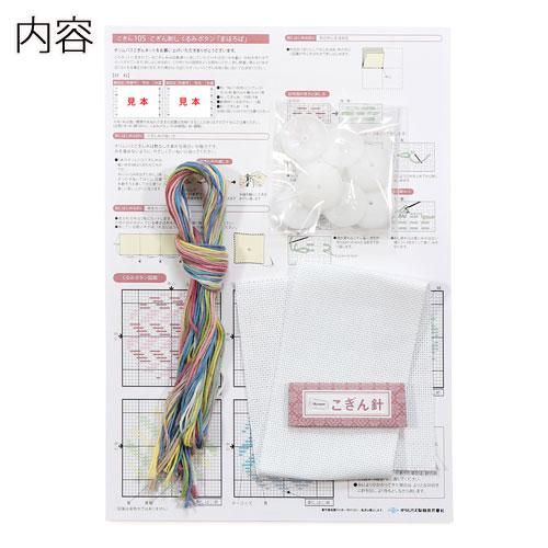 ●内容:オリムパスこぎん糸(綿100%)、オリムパスNo.1100布〈コングレス〉、くるみボタン 5組 、こぎん針、作り方説明書