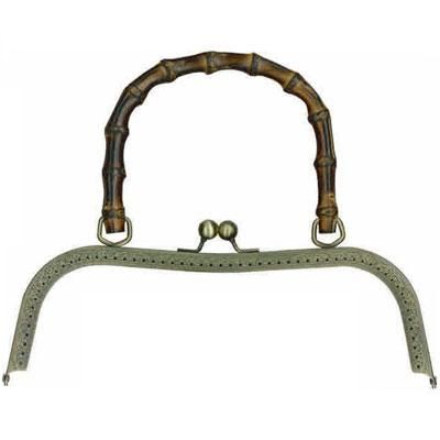イナズマ 竹持ち手付 くし型縫い付けがま口 口金 幅27cm BK-2702