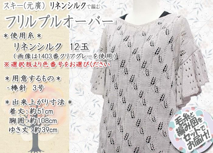 スキー(元廣) フリルプルオーバー 着分セット(リネンシルク12玉・編図)【着分92番】