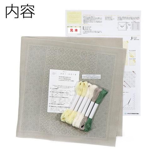 ●キット内容:刺し子もめん(セージ)、刺し子糸(綿100%)、刺し子針、作り方説明書