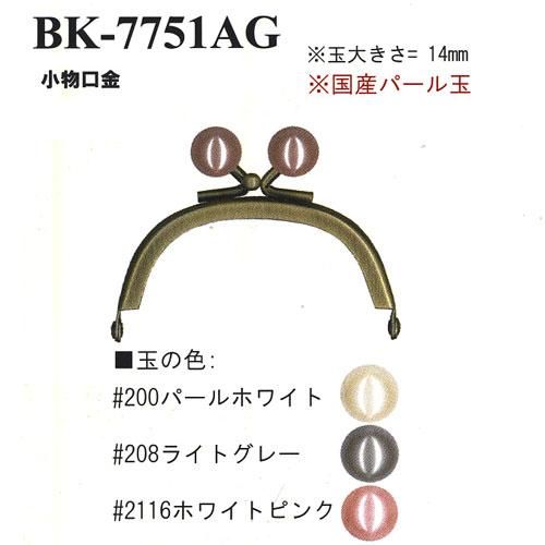 イナズマ 丸型 パール玉付小物がま口 口金 幅7.5cm BK-7751AG(アンティークゴールド)